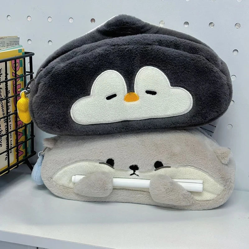Trousse Kawaii Pingouin – Peluche Douce & Grande Capacité pour Stylos